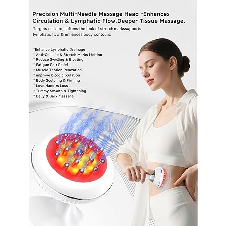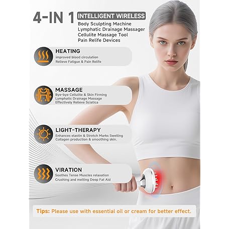 Thông tin sản phẩm Lymphatic Drainage Massager & Anti Cellulite Massage Tool, Helps Reduce Stretch Marks & Cellulite, for Legs, Arms & Belly, Body Sculpting Machine with Microcurrent & Light & Heat & Vibration