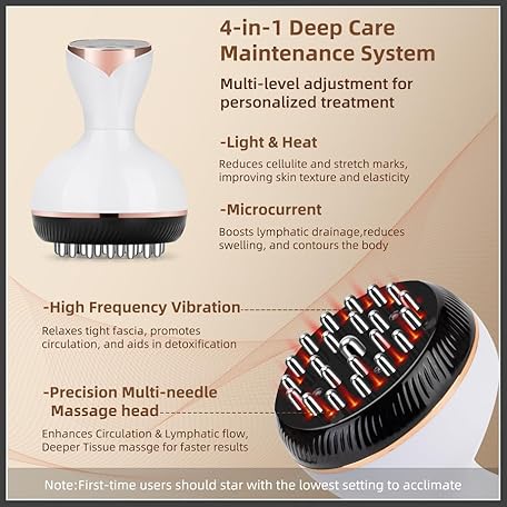 Thông tin sản phẩm Lymphatic Drainage Massager, Cellulite Massage Tool Helps Reduce Stretch Marks & Cellulite Remover, for Belly, Legs, Arms, 30 Levels Microcurrent, Red Light, Heat and Vibration Body Engraving Machine