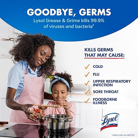 Thông tin sản phẩm Lysol Pro Kitchen Spray Cleaner and Degreaser, Antibacterial All Purpose Cleaning Spray for Kitchens, Countertops, Ovens, and Appliances, Citrus Scent, 22oz