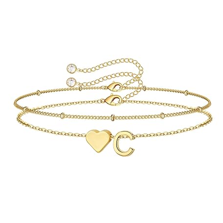 M MOOHAM Christmas Gifts Initial Heart Bracelets for Women - Stocking Stuffers for Teen Girls Kids Gifts Trendy, Layered Dainty 14K-Gold-Plated Heart Letter A-Z Charm Bracelets for Women Birthday Gift
