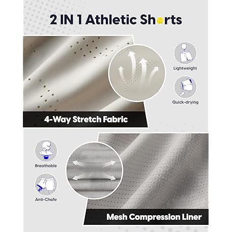maamgic Men's 2 in 1 Gym Shorts 5 Inch Athletic Tennis Shorts Stretch Workout Running Shorts with Liner