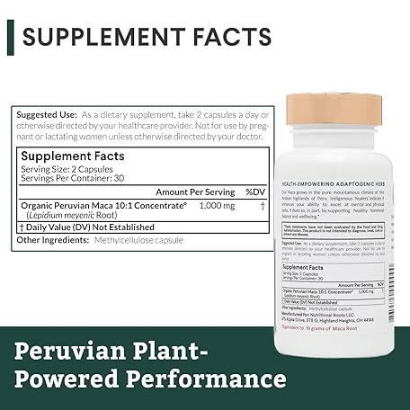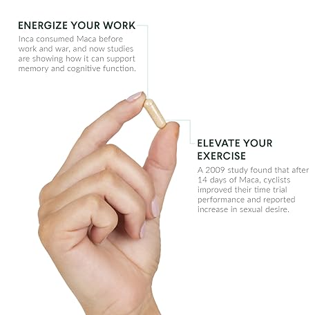 Thông tin sản phẩm Maca Root Capsules: Peruvian Maca 10x, Made with Organic Maca Powder (Lepidum meyennii), 10:1 Concentration, Single-Origin, Vegan, Gelatinized Maca Supplement, 60 ct.