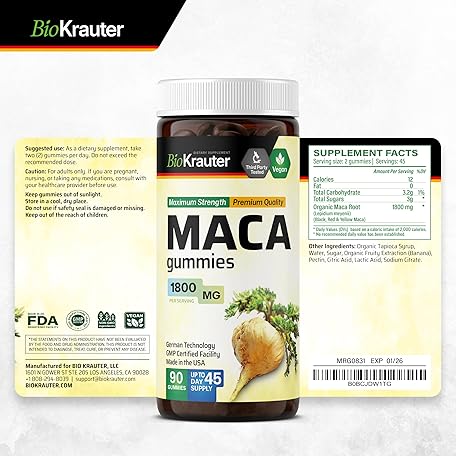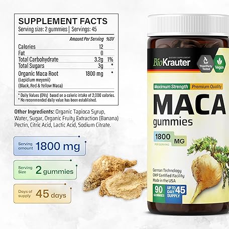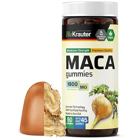 Maca Root Gummies - 1800 mg Strength - 90 Vegan Chews - Natural Support for Women & Men - Peruvian Maca Root Supplement - Banana Flavour Chews
