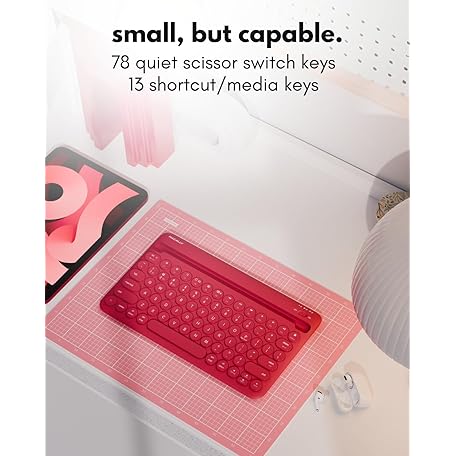 Thông tin sản phẩm Macally Bluetooth Tablet Keyboard - Multi Device Wireless Keyboard for Phone, iPad mini/Pro, Android - Rechargeable with Built in Stand and Quiet Keys
