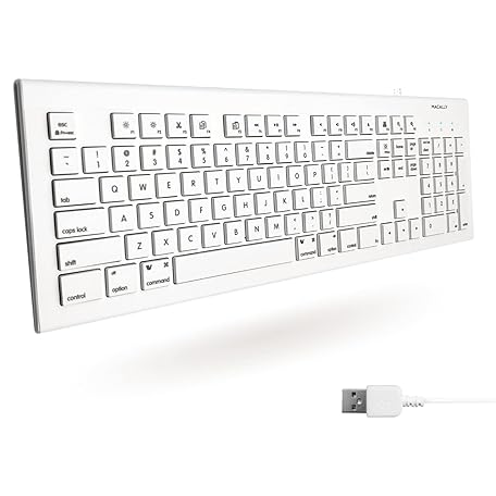 Thông tin sản phẩm Macally Full Size USB Wired Keyboard for Mac and PC - Plug & Play Wired Computer Keyboard - Compatible Apple Keyboard with 15 Shortcut Keys for Easy Controls & Navigation of Macbook Pro/Air, iMac