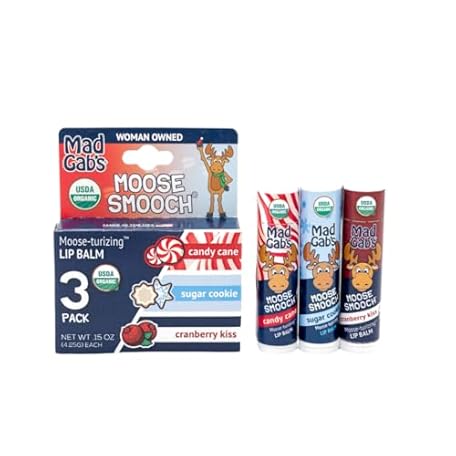 Mad Gab's Moose Smooch New Holiday Lip Balm | Moisturizing and Certified Organic | Made with Organic Olive Oil and Beeswax