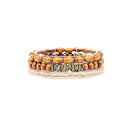 Made by Nami Surfer Beaded Bracelet Stack for Men Waterproof & Adjustable Boho Bracelet Set Handmade Jewelry Gift for Him (Nautical Yard, Brown Beads)