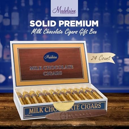 Thông tin sản phẩm Madelaine Solid Premium Milk Chocolate Cigar Gift Box - Made with Fresh Milk, Cocoa Bean & Swiss-Formulated Chocolate - Ideal for Father's Day - 24 Count Individually Wrapped in an Elegant Hard Box