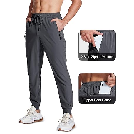 • MAGCOMSEN Men's Joggers with Zipper Pockets Lightweight Hiking Sweatpants Athletic Pants for Men Running Workout Traning Gym