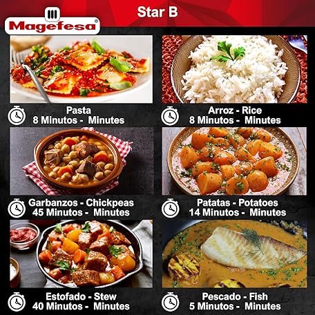 Thương hiệu Magefesa là cái tên nổi tiếng được rất nhiều khách hàng trên thế giới chọn lựa. Với kiểu dáng đẹp mắt, sang trọng, sản phẩm MAGEFESA Star Belly Pressure Cooker 10.6 Qt – 18/10 Stainless Steel, Rounded Bottom, 3 Safety Systems, Works on All Stovetops Including Induction, 8 PSI là sự lựa chọn hoàn hảo nếu bạn đang tìm mua một món cho riêng mình.