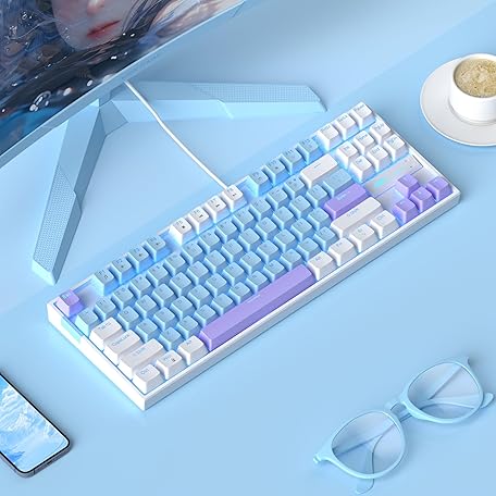 Thông tin sản phẩm MageGee 75% Mechanical Gaming Keyboard, Blue Switch, LED Blue Backlit, 87 Keys Compact TKL Wired Keyboards for Windows Laptop PC Gamer - Blue/White