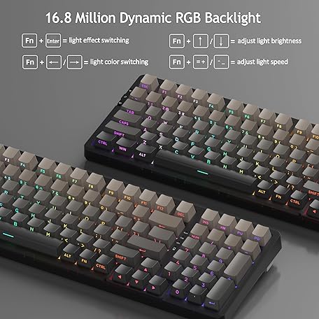 MageGee LIGHT100 Wireless Creamy Keyboard, Gasket Structure Hot Swappable, 2.4G/USB-C/BT5.0 RGB Backlit Mechanical Gaming Keyboard for Win/Mac/PC, 8000mAh Battery, Side Printed PBT Keycap, Black