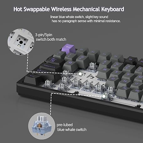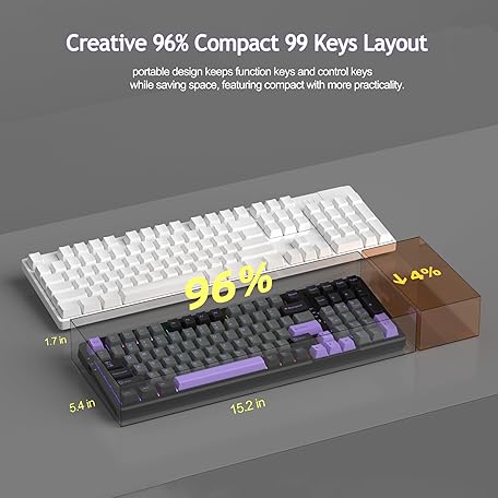 MageGee LIGHT100 Wireless Creamy Keyboard, Gasket Structure Hot Swappable, Tri-Mode 2.4G/USB-C/BT5.0 RGB Backlit Mechanical Gaming Keyboard for Win/Mac/PC, PBT Keycap, 4000mAh Battery, Purple