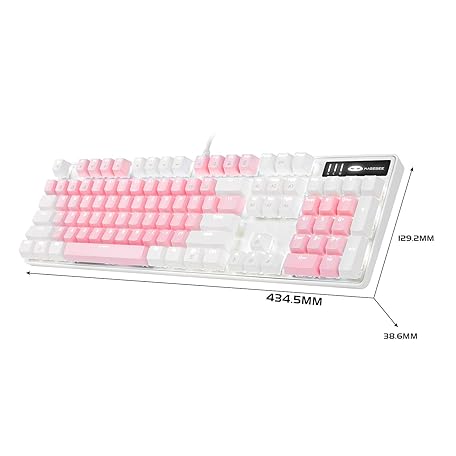 Thông tin sản phẩm MageGee Mechanical Gaming Keyboard, New Upgraded Blue Switch 104 Keys White Backlit Keyboards, USB Wired Mechanical Computer Keyboard for Laptop, Desktop, PC Gamers(White & Pink)
