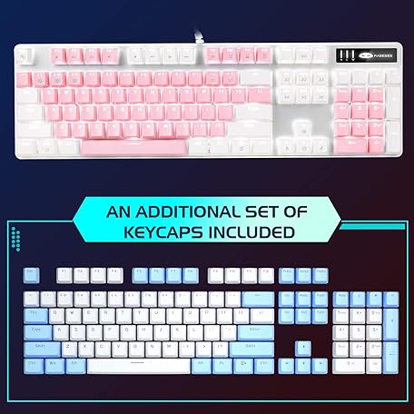 Sản phẩm MageGee Mechanical Gaming Keyboard, New Upgraded Blue Switch 104 Keys White Backlit Keyboards, USB Wired Mechanical Computer Keyboard for Laptop, Desktop, PC Gamers(White & Pink) đang được bán với giá ưu đãi là $43.5891 tại nước Mỹ.