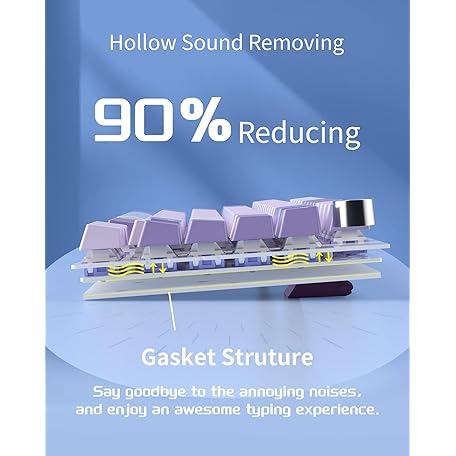 Thông tin sản phẩm MageGee SKY81 75% Mechanical Gaming Keyboard, Gasket Hot Swappable Wired Custom Creamy Keyboard with 5-Layer Sound Dampening, Knob Control, RGB Backlit, NKRO for Win/Mac (Violet, Violet Switch)