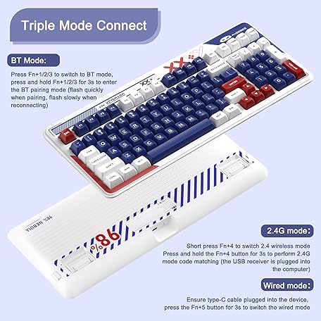 Thông tin sản phẩm MageGee Wireless Mechanical Keyboard,Cloud98 RGB Backlight Triple Mode 2.4GHz/BT/USB-C Wired Gaming Keyboard,Gasket Mounted PBT Material 98 Keys Hot-Swappable Keyboard - Cloud Sea/LvoryWhite Switch