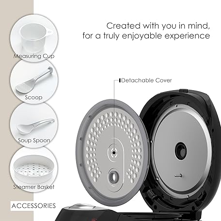 Thông tin sản phẩm MAGiC COM multi-Functional Digital Rice Cooker 10 Cup Uncooked (20 Cup Cooked), 15-in-1 Programmable Electric Rice & Grain Cooker with Auto Clean, Non-Stick Pot, Steamer Basket, 24H Delay Timer, and Auto Keep Warm(Black)