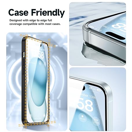 MAGIC JOHN 2 Pack for iPhone 15 Tempered Glass Screen Protector 6.1 inch [Not Max], Auto Dust-Elimination Installation, Bubble Free, Dynamic Island Compatible, HD Clear, Easy Installation