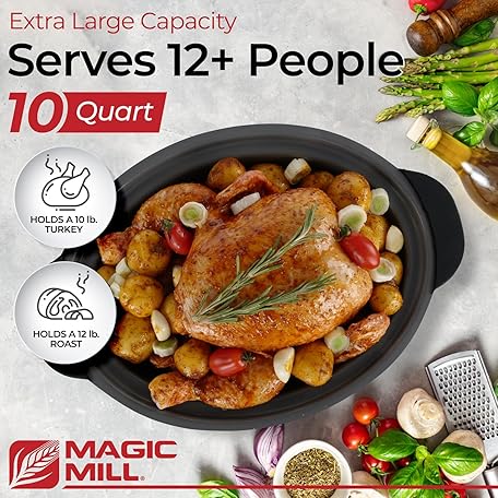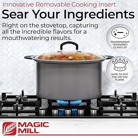 Thông tin sản phẩm Magic Mill Slow Cooker 10 Quart | Extra Large Non-Stick Metal Searing Pot & Transparent Tempered Glass Lid Multipurpose Lightweight Slow Cookers, Pot is Safe to Put the On the Flame, Dishwasher Safe
