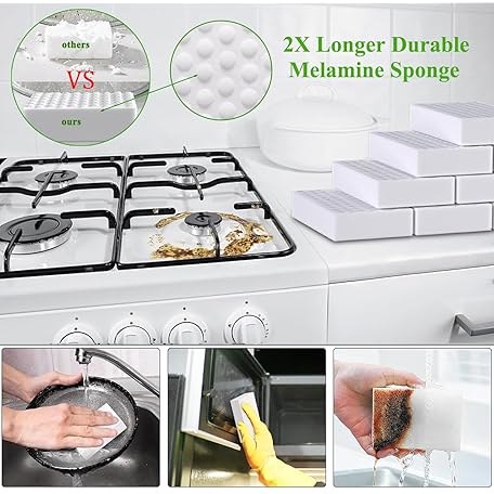 Magic Sponge Eraser100Pack, 2X Durable White Melamine Foam Pads, All-Purpose Large Kitchen Dish Cleaning Nano Scrub Non-Scratch Sponge for Household, Bathroom, Shoe Cleaner