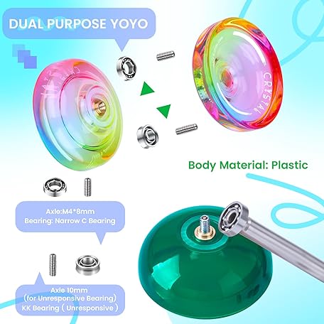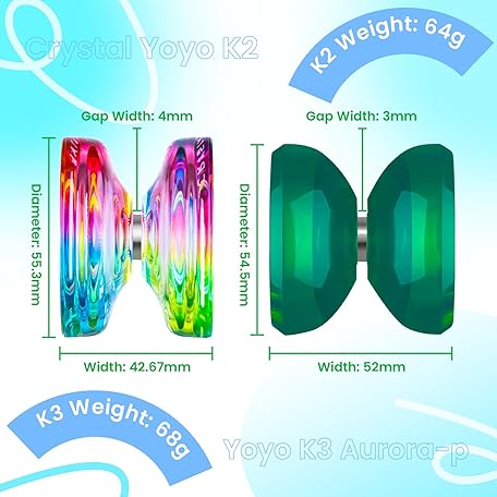 MAGICYOYO K3 + K2 Professional Yoyo Set - 2 Packs Responsive & Unresponsive Yoyos for Kids Beginners and Advanced, Pro Dual Yo-yos with 12 Strings, Gift Case, Bearing Kits ( K3 Green + K2 Gradient)