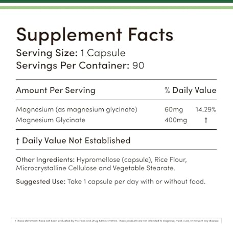 Thông tin sản phẩm Magnesium Glycinate 400mg, 90 Capsules (Vegan Safe, Third Party Tested, Gluten Free, Non-GMO) High Absorption Magnesium by Double Wood Supplements
