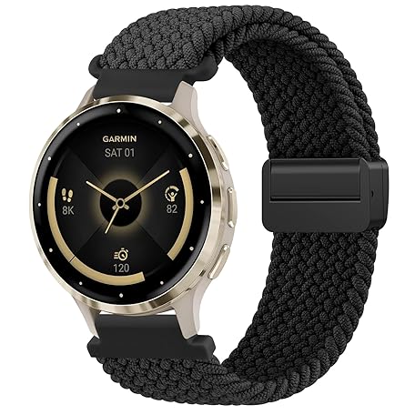 Magnetic Braided Watch Band Compatible with Garmin Venu 3S / Vivoactive 4S / Venu 2S / Vivomove 3S, 18mm Replacement Wristband Strap for Garmin Forerunner 255s/265S Smart Watch