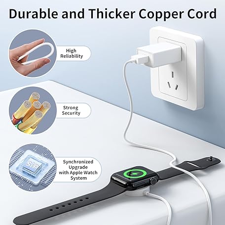 • Magnetic Fast Charger for Apple Watch, Wireless Charging Cable for All iWatch Series (1 m)