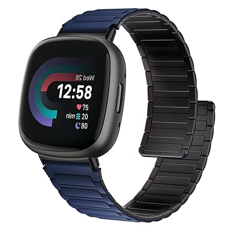 Magnetic watchband Compatible with Fitbit Sense/Versa 3 / Versa 4 / Sense 2 Silicone Replacement Wristband Strong Magnet link for Sense/Versa 3 / Versa 4 / Sense 2 Accessories (Blue)