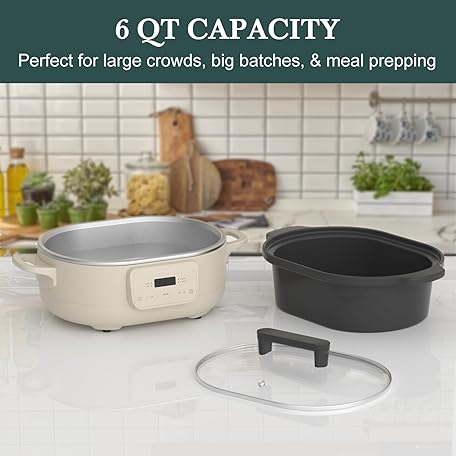 MAGNIFIQUE 6 Quart Programmable Slow Cooker Removable Healthy Nonstick Pot - Small Kitchen Appliance for Family Dinners - Serves 6+ People - Heat Settings: Keep Warm Oatmeal