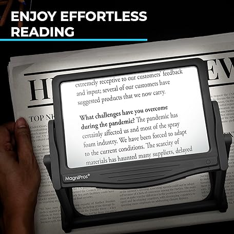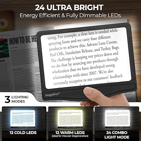 MAGNIPROS Patented 5X Large LED Page Magnifier with Detachable Stand | Eye Caring 3 Color Light Modes & Anti-Glare Lens to Reduce Eye Strain-Ideal for Reading Fine Print, Crafting, Low Vision Seniors