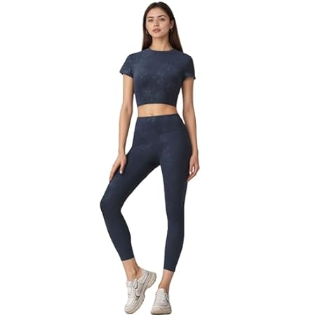 Maizoon Gym Set for Women Stylish 2 Piece Workout Set with Sports Short Sleeve & Leggings Athleisure Tracksuit