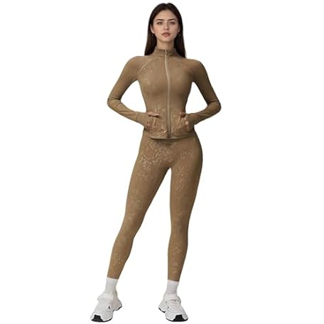 Maizoon Gym Sets for Women 2 Piece Stylish Yoga Set Jacket & Sports Long Pants High Waisted Four-Way Stretch Athletic Set