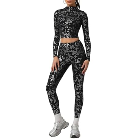 Maizoon Women's 2 Piece Gym Sets Activewear Tracksuit with Long Sleeve Top and Yoga Long Pants Silver Finish