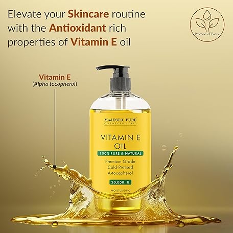 Thông tin sản phẩm Majestic Pure Vitamin E Oil - 100% Pure & Natural, 20,000 IU | Premium Grade, Cold-Pressed and Tocopherol to Repair Dry, Damaged Skin | Moisturizing Skin, Hair and Scalp 8 Fl Oz