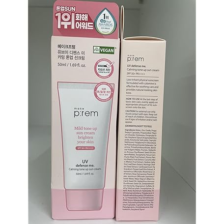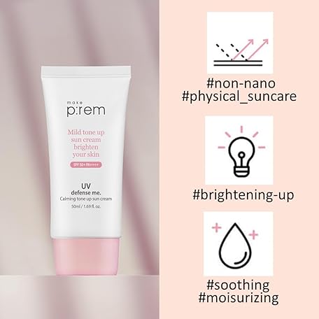Thông tin sản phẩm MAKE P:REM UV Defense Me. Calming Tone Up Sunscreen, Non-Nano Zinc Oxide, Reef Safe, Chemical Free, Non-Greasy, SPF 50, Korean Sunscreen,1.69 fl. oz. (50ml)