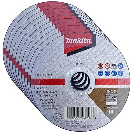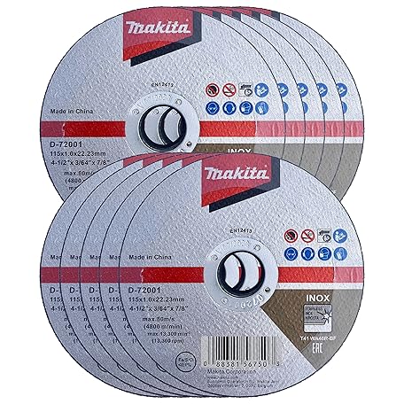 Sản phẩm Makita 10 Pack 4 1/2" Cut Off Wheels for Metal & Stainless Steel | 4.5" x .045" x 7/8" Cutting Discs for Angle Grinder | Aggressive Thin Cut Off Wheels đang được bán với giá ưu đãi là $25.0591 tại nước Mỹ.