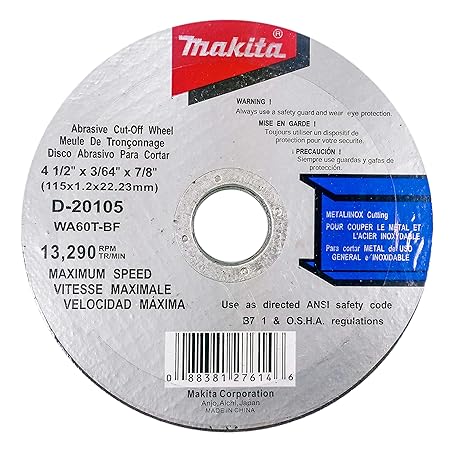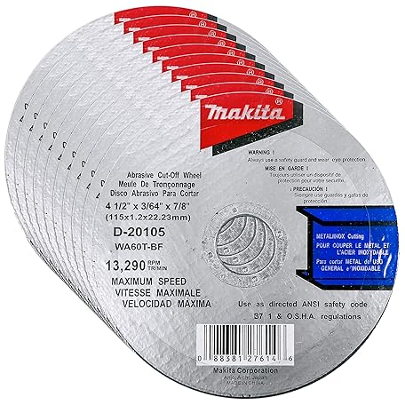 Sản phẩm Makita 10 Pack - 4.5" Cut Off Wheels For Grinders - Aggressive Cutting For Metal & Stainless Steel/INOX - 4-1/2" x .045 x 7/8-Inch đang được bán với giá ưu đãi là $25.0591 tại nước Mỹ.