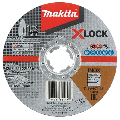 Sản phẩm Makita E-00474 X-Lock 5" x .045" x 7/8" Type 1 General Purpose 60 Grit Thin Cut‑Off Wheel for Metal and Stainless Steel Cutting đang được bán với giá ưu đãi là $5.777 tại nước Mỹ.