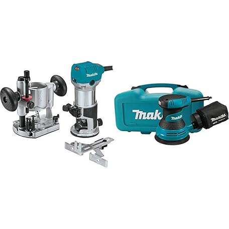 Sản phẩm Makita RT0701CX7 1-1/4 HP Compact Router Kit, Fixed and Plunge bases with 5" Random Orbit Sander, Tool Case with BO5030K 5 inch Random Orbit Sander đang được bán với giá ưu đãi là $335.72 tại nước Mỹ.