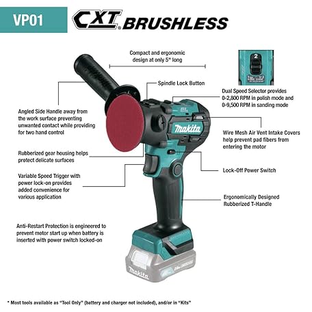 Thương hiệu Makita là cái tên nổi tiếng được rất nhiều khách hàng trên thế giới chọn lựa. Với kiểu dáng đẹp mắt, sang trọng, sản phẩm Makita VP01Z 12V max CXT® Lithium‑Ion Brushless 3" Polisher / 2" Sander, Tool Only là sự lựa chọn hoàn hảo nếu bạn đang tìm mua một món cho riêng mình.