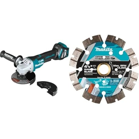 Makita XAG20Z 18V LXT® Li-Ion Brushless Cordless 4-1/2” / 5" Paddle Switch Cut-Off/Angle Grinder, with Electric Brake, Tool Only with E-23260 4-1/2" Thin Kerf Diamond Blade, Segmented, General Purpose