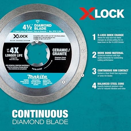 Thương hiệu Makita là cái tên nổi tiếng được rất nhiều khách hàng trên thế giới chọn lựa. Với kiểu dáng đẹp mắt, sang trọng, sản phẩm Makita Xlock 4 1/2 Inch Continuous Rim Diamond Blade for Ceramic and Granite là sự lựa chọn hoàn hảo nếu bạn đang tìm mua một món cho riêng mình.