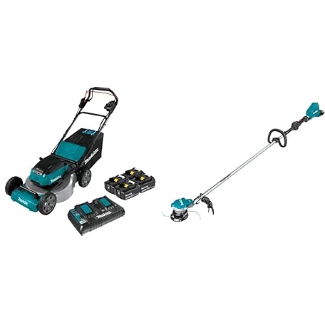Makita XML06PT1 36V (18V X2) LXT Brushless 18" Self-Propelled Commercial Lawn Mower Kit with 4 Batteries (5.0Ah), with XRU15Z 36V (18V X2) LXT Brushless String Trimmer