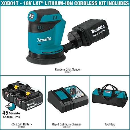 Sản phẩm Makita XOB01T 5.0Ah 18V LXT Lithium Ion Cordless 5 Piece Random Orbit Sander Kit đang được bán với giá ưu đãi là $429.46 tại nước Mỹ.