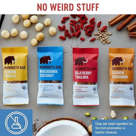 Mammoth Bar Variety Pack – 10 Organic Protein Bars – Prebiotic • Paleo • Gluten Free • Egg Protein • GMO Free • Raw • Premium Nuts
