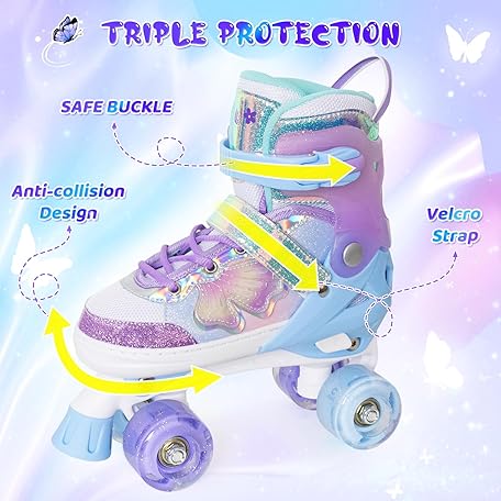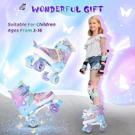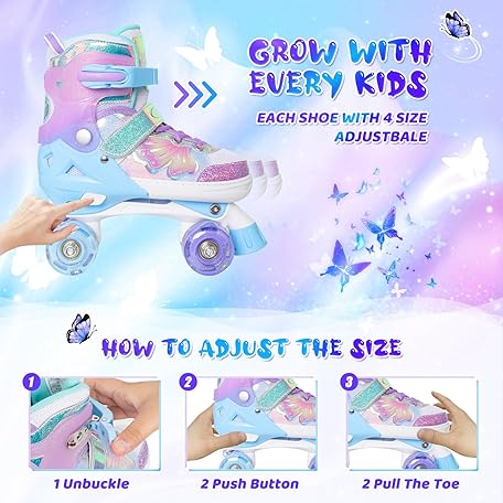 MammyGol Kids Roller Skates for Girls or Boys, Adjustable Roller Skates for Children with Beautiful Butterflies, Beginners 3-16 Years Old Light up Quad Skates Indoor Outdoor