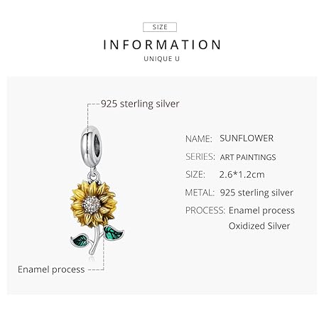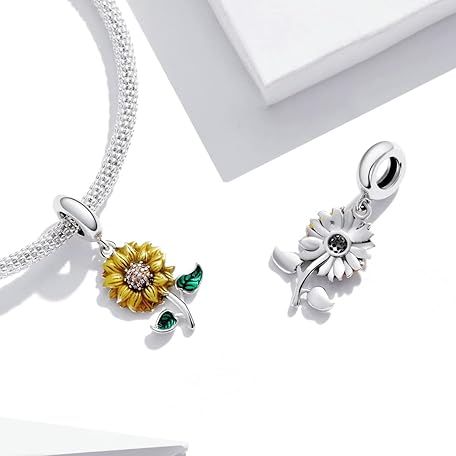Manhe Charms Sunflower Charms Sterling Silver Beads fit Pandora Bracelet You are My Sunshine Charms Pendant Necklaces Jewelry for Women Mom Wife