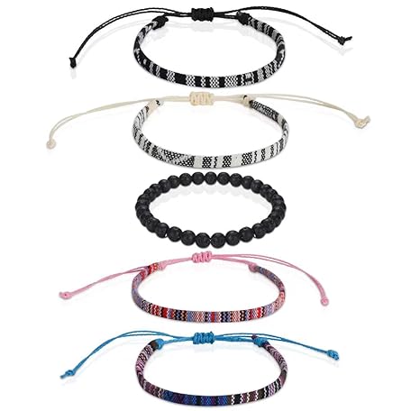 Mannikesi Beach Bracelet Set for Men and Women, Surfer Men Bracelet, Braided Boho Summer Bracelets Adjustable Men's Bracelet Handmade Women Bracelet String Rope Ankle Bracelets Birthday Gift